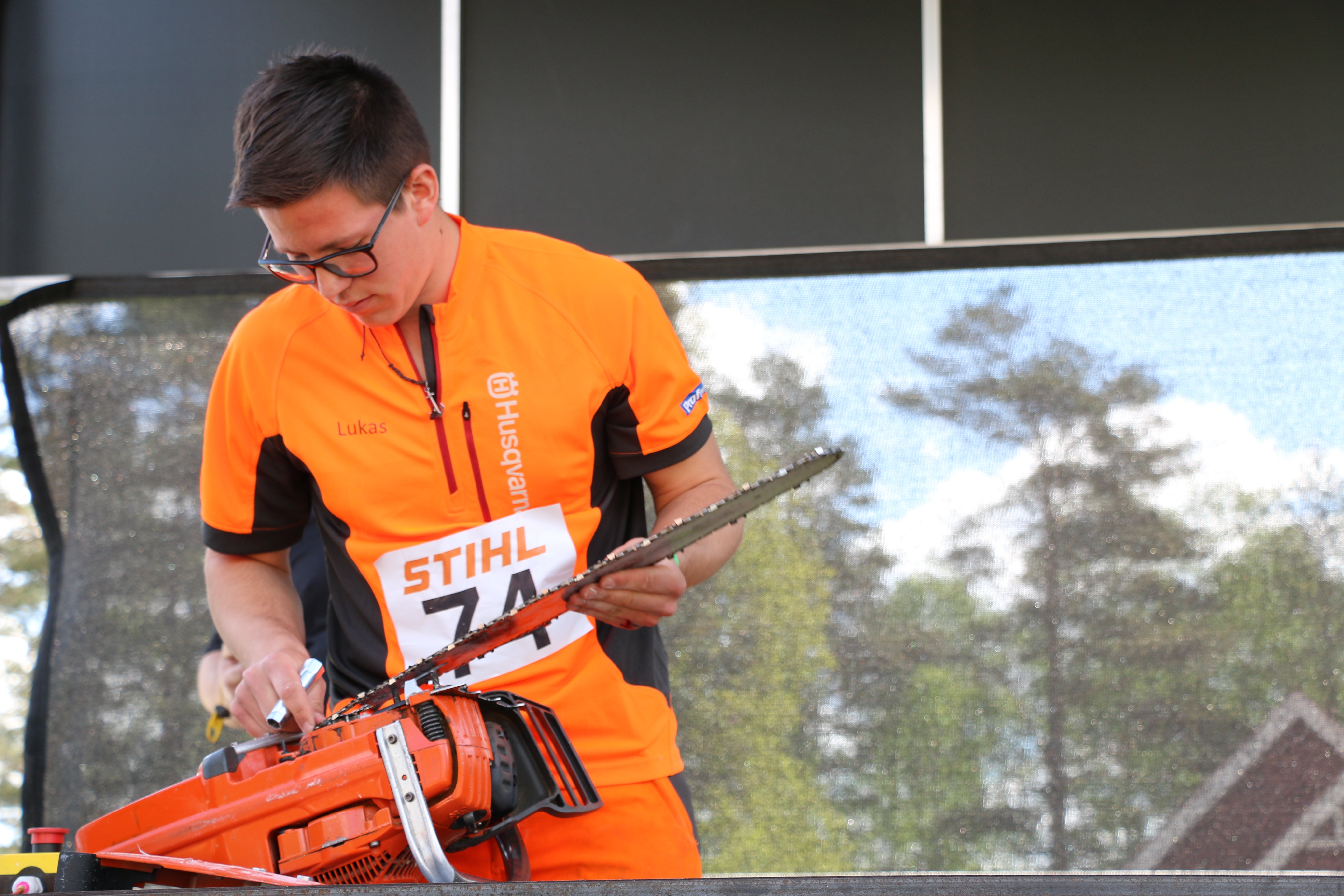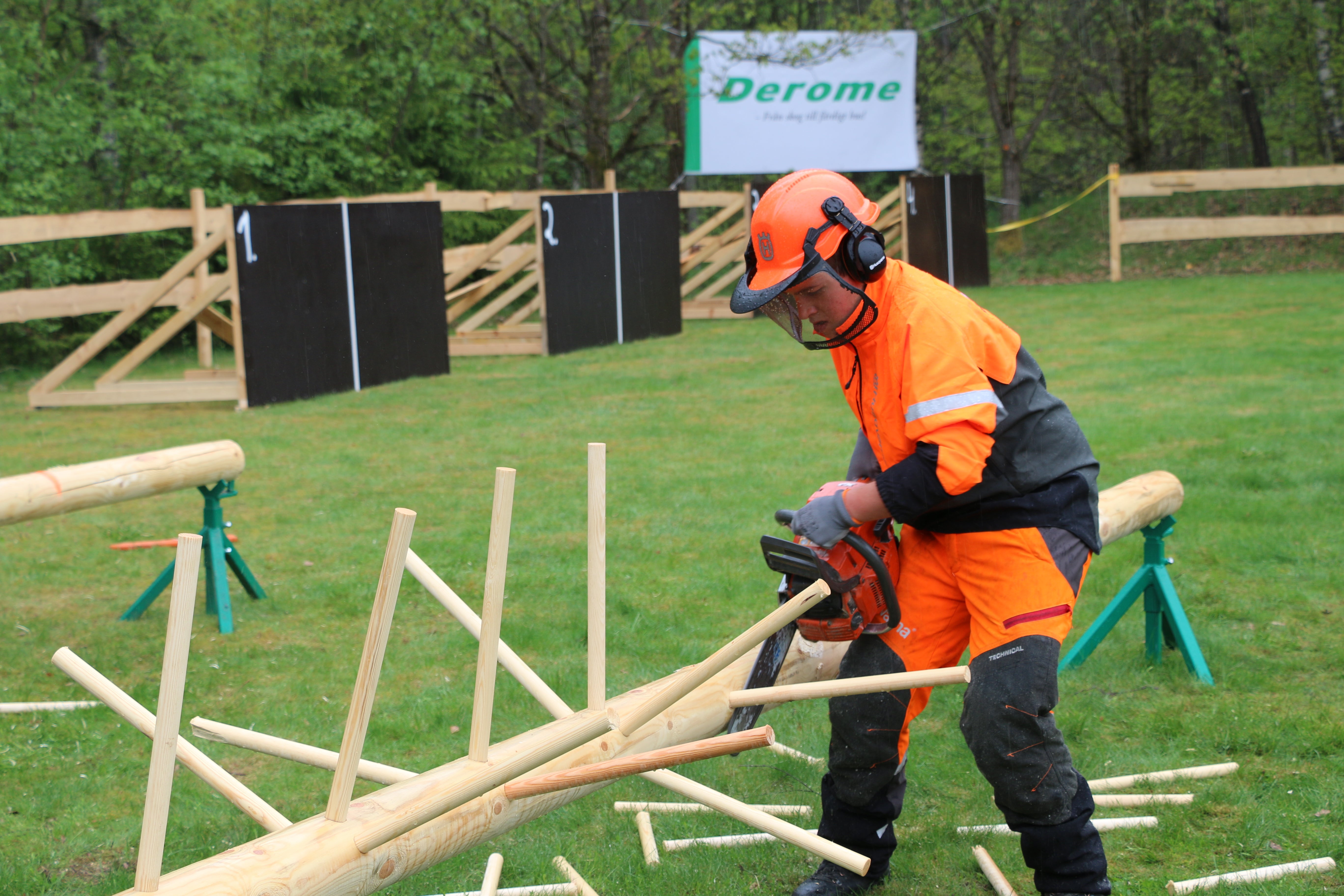 A tree must be cut down within 90 seconds on a simulator, which is aimed to fall as near as possible to a pre-determined felling direction. During the discipline, one must work within the valid safety regulations and working techniques.