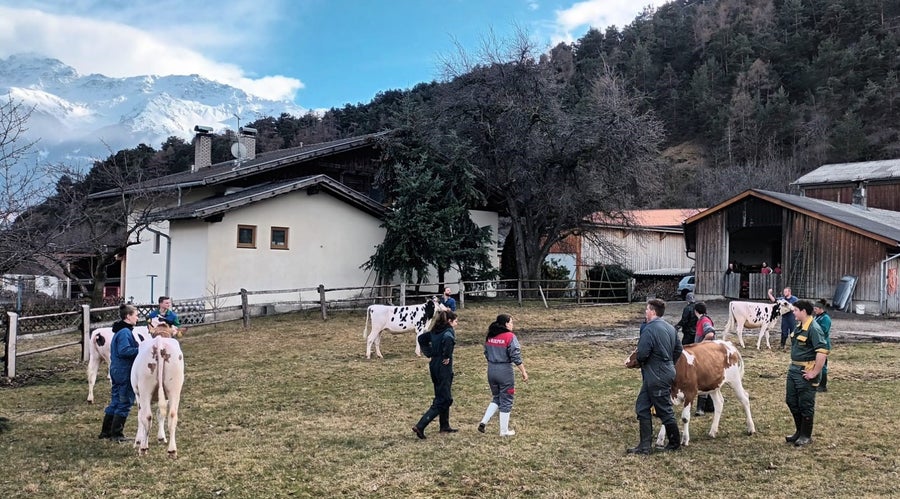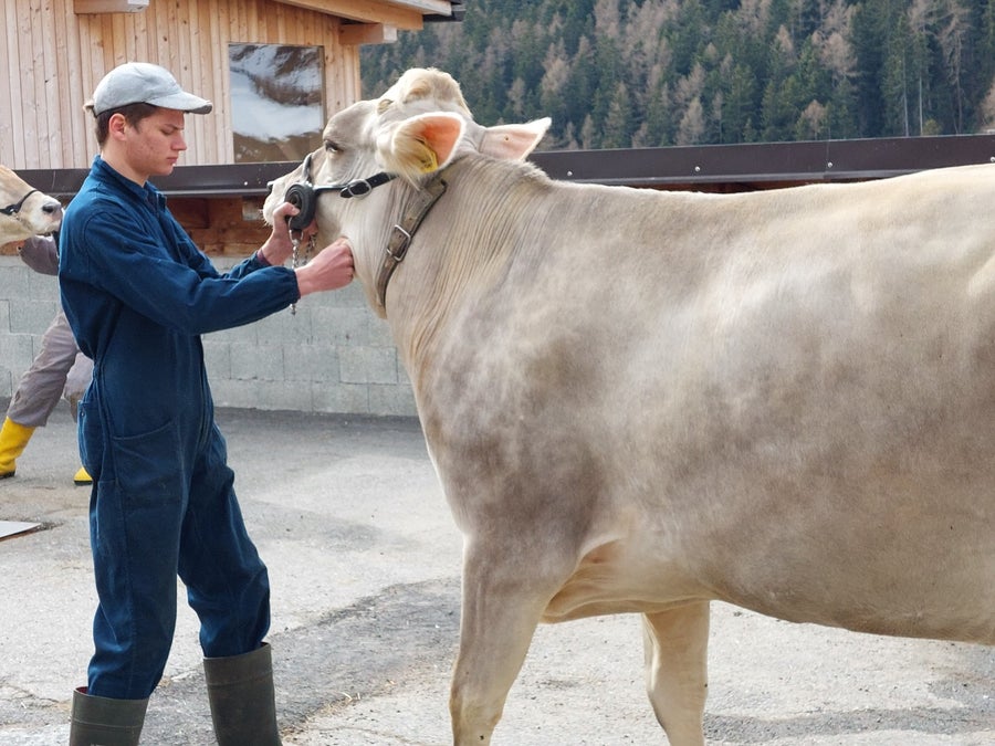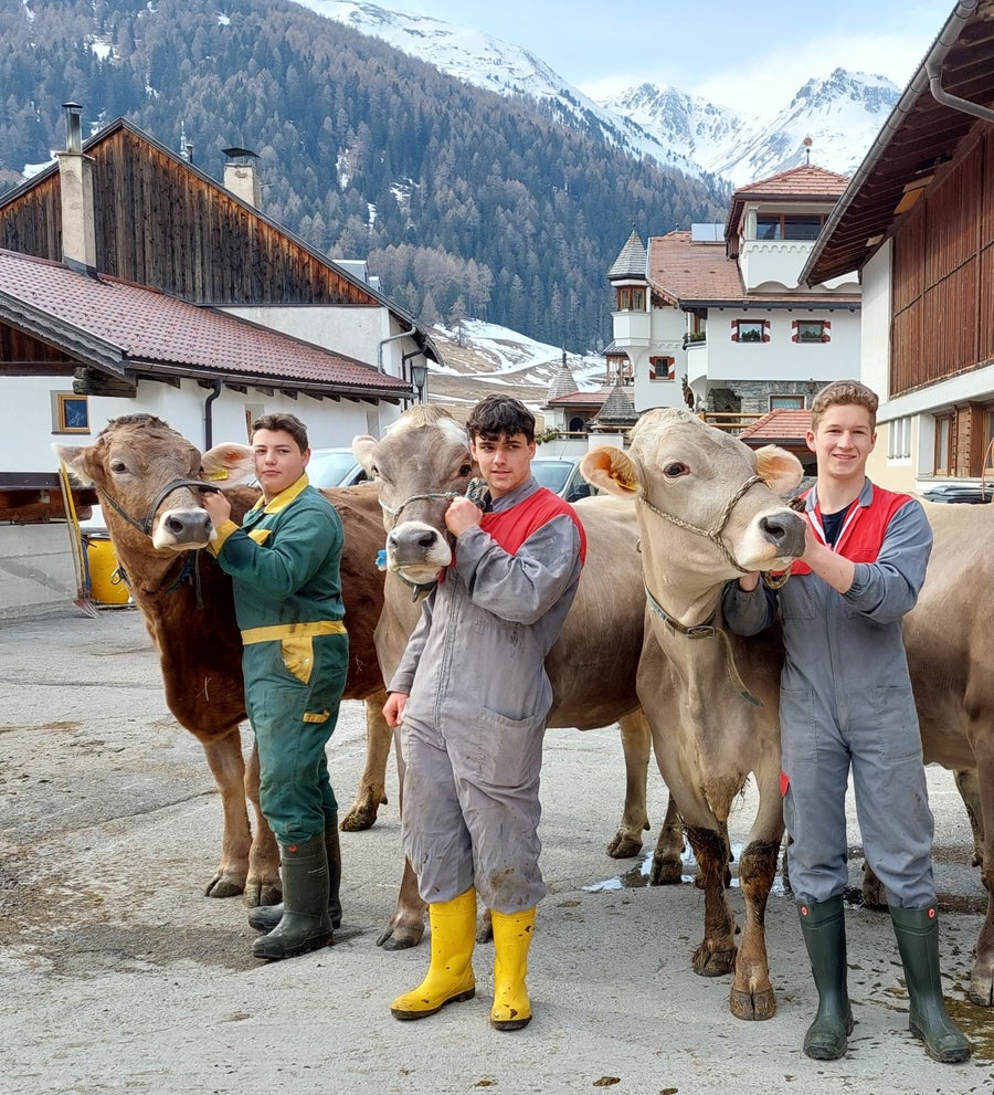 Vertreter des Südtiroler Braunvieh-Jungzüchterclubs zeigten unseren Schüler*innen der 3. und 4. Klasse Fachrichtung Nutztierhaltung, worauf es ankommt, dass sich Rinder bei Schauen und Versteigerungen gut präsentieren. Die Vermarktung ist dadurch oft gewinnbringender und auch bei Ausstellungen stellt sich öfter ein Erfolg ein. Die Tiere werden vorbereitet, aber auch die präsentierende Person muss auf einiges achten.