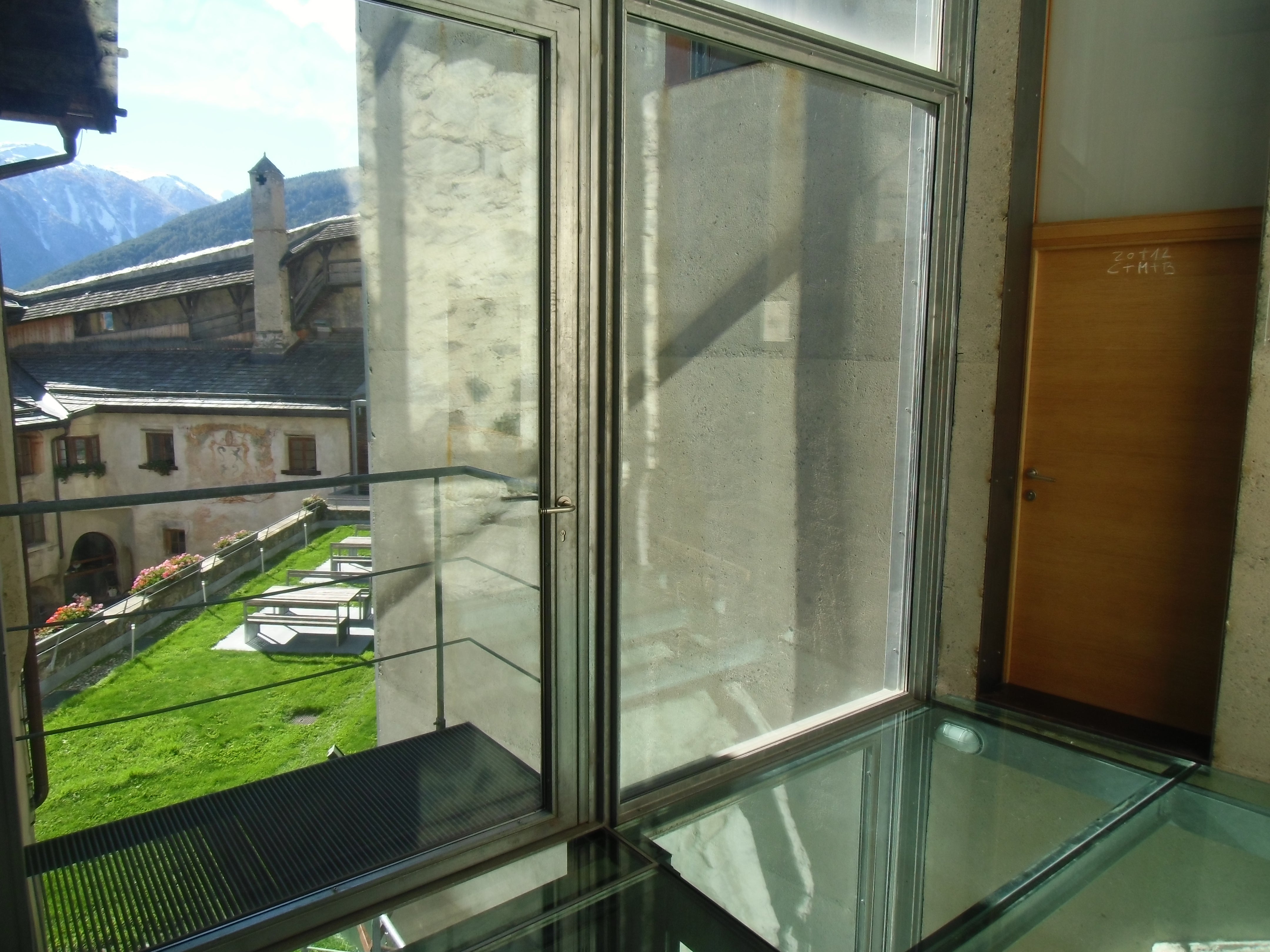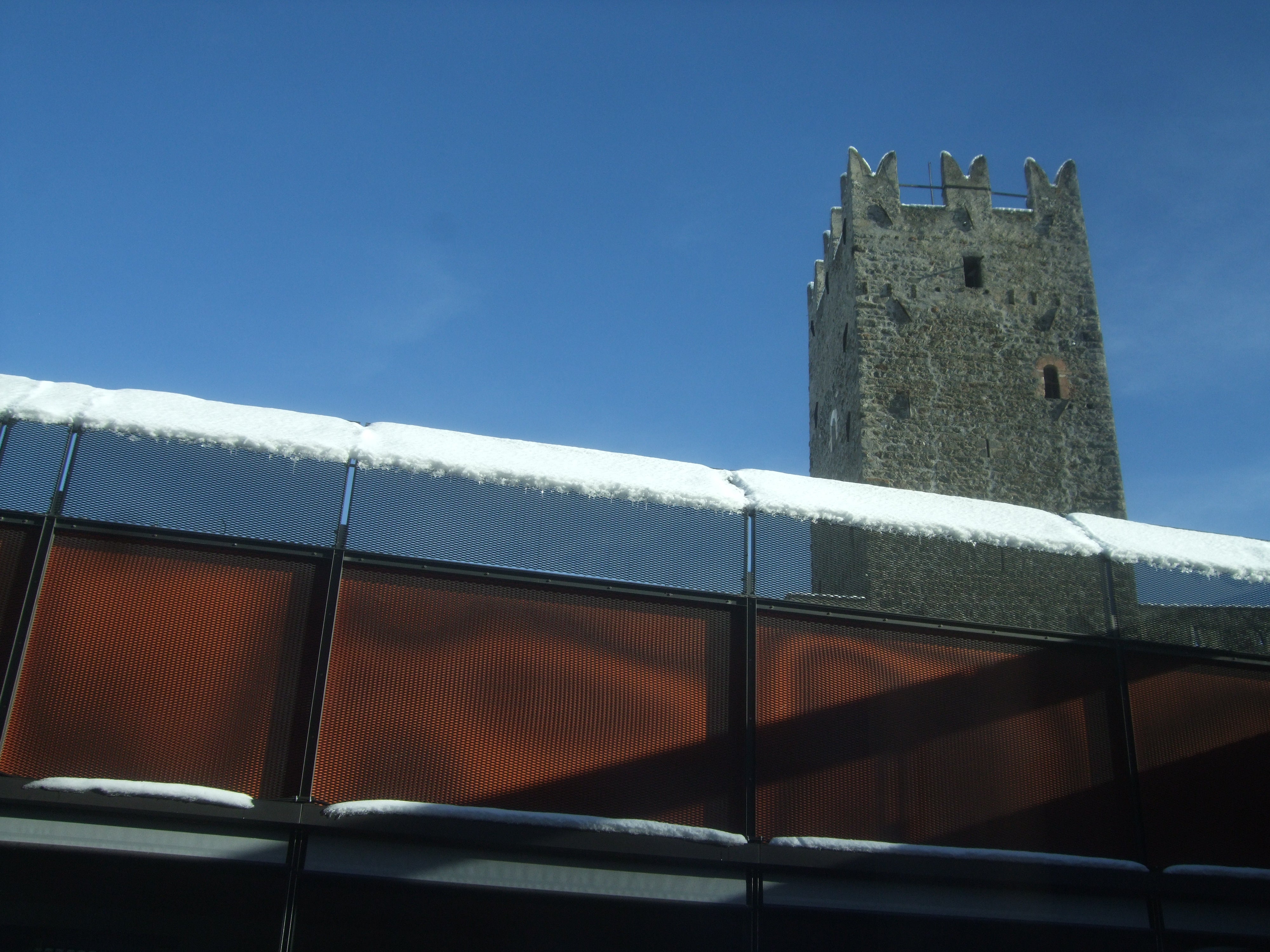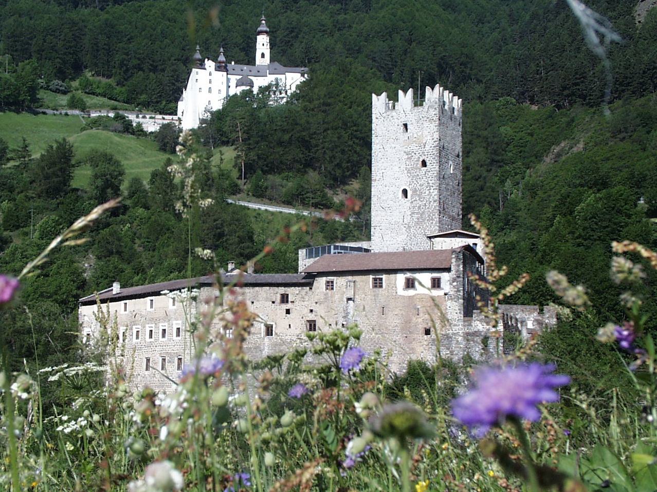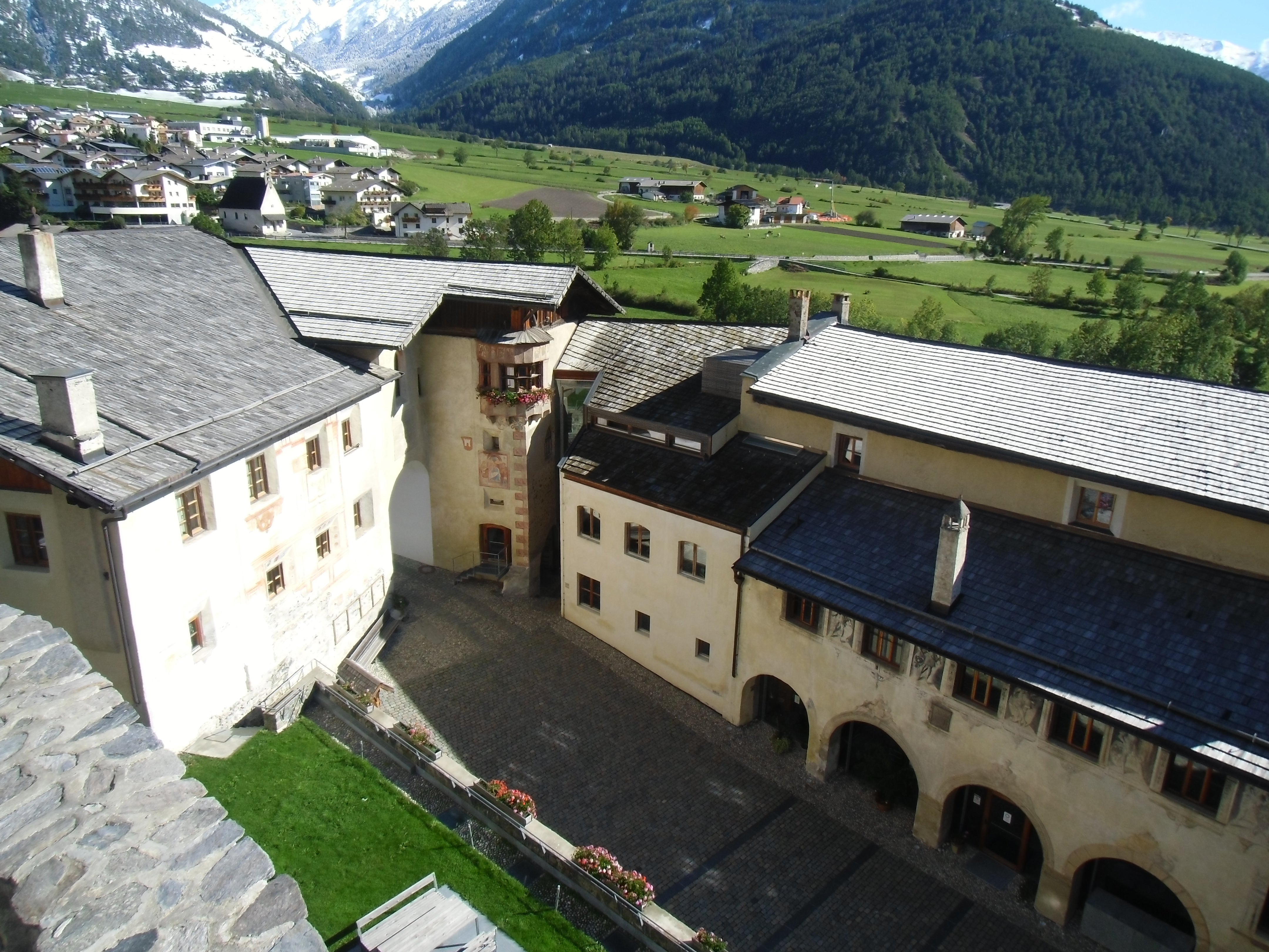 Gleich mehrere Gebäude umfasst das Areal unserer Schule. Dabei fallen jedem sofort die alten Mauern und der, mit seinen markanten Zacken, in die Luft ragende Turm ins Auge. Seit dem Jahr 2011 haben wir dazu ein neues Schulgebäude direkt, wenn auch etwas versteckt, neben der Fürstenburg. Darin finden sich weitere Klassenräume, Werkhallen, eine hauseigene Schul-Sennerei, eine Aula Magna für Veranstaltungen und Tagungen und ein neuer EDV-Raum.