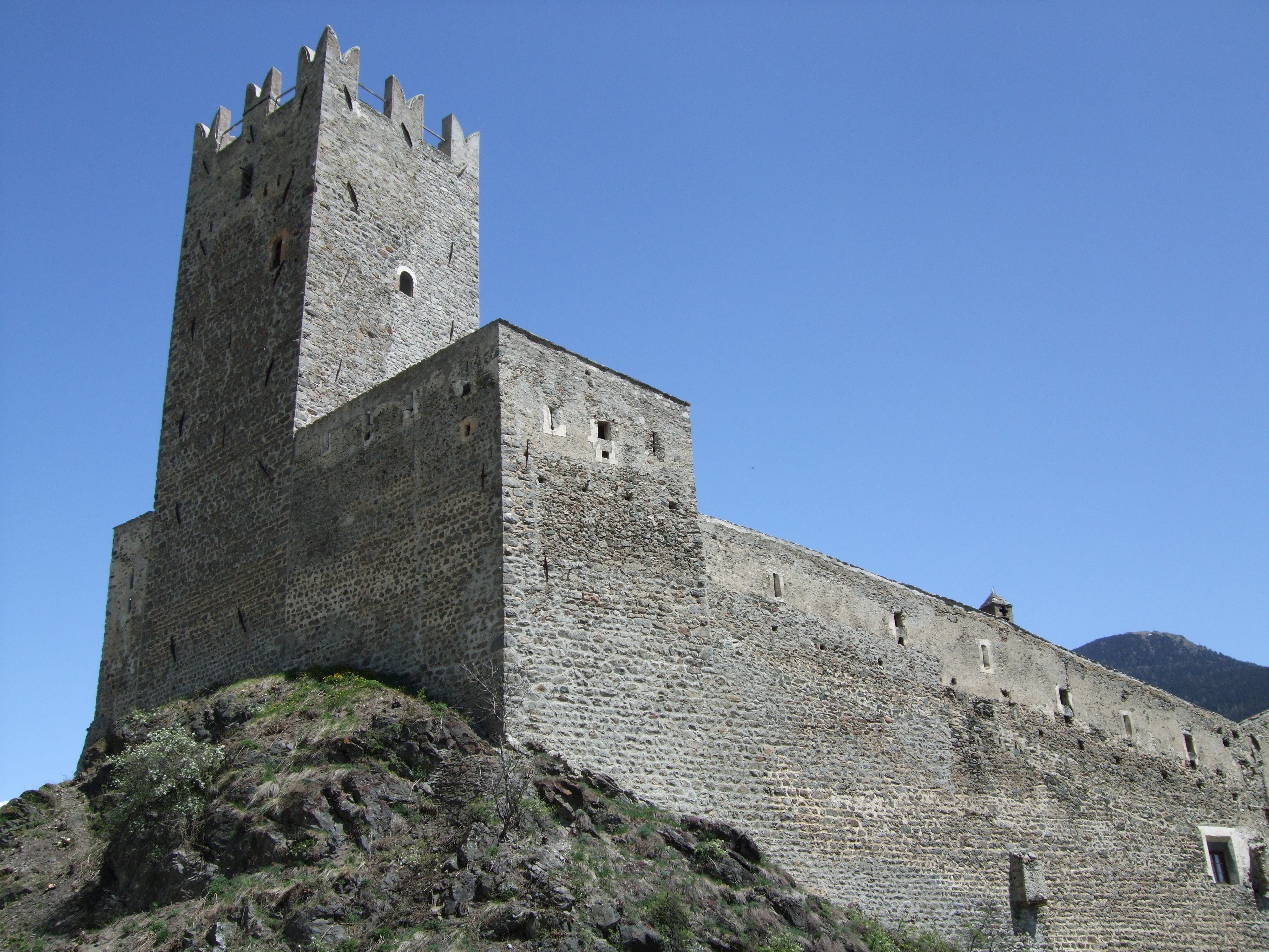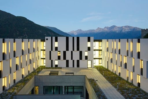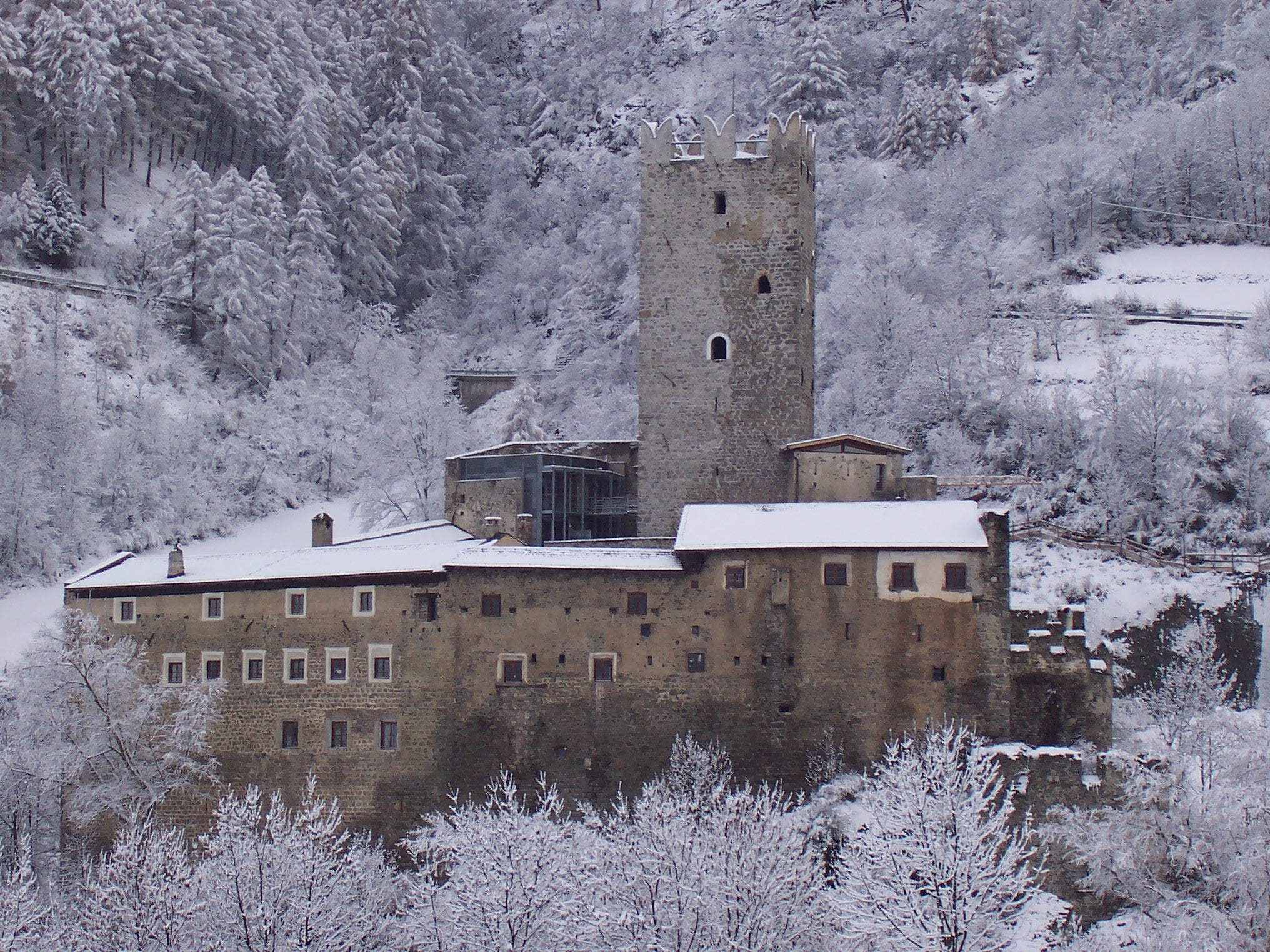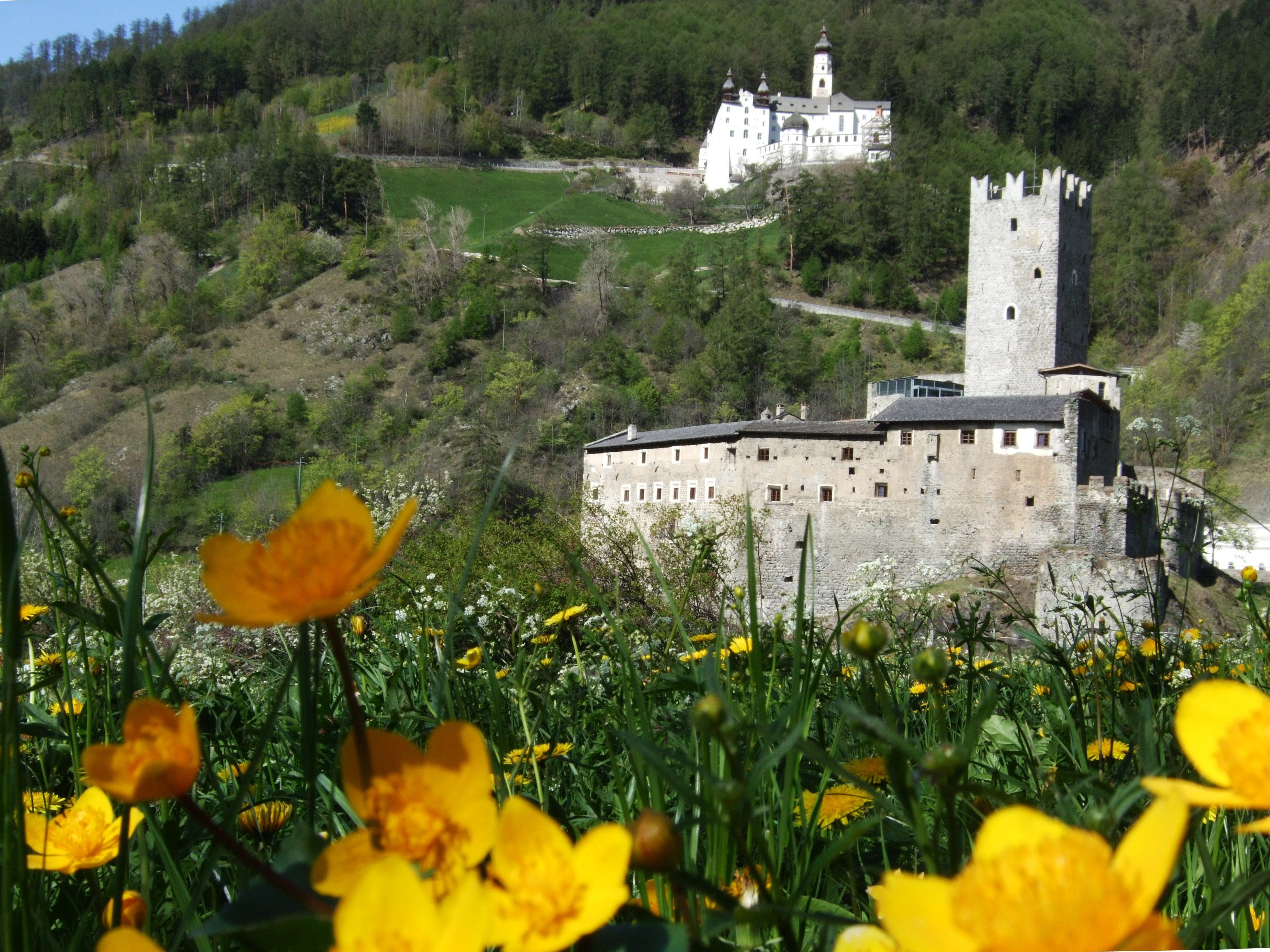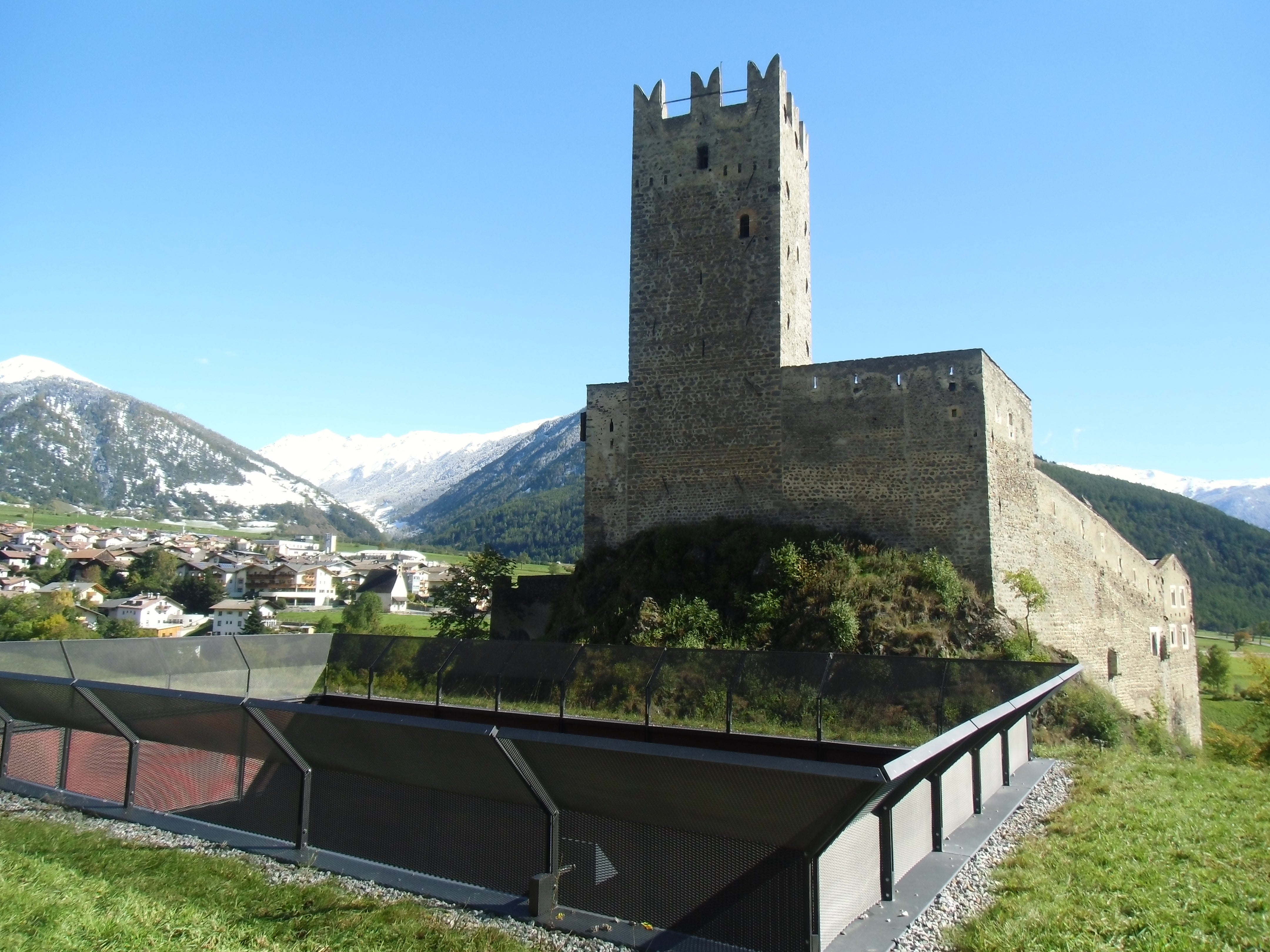 Gleich mehrere Gebäude umfasst das Areal unserer Schule. Dabei fallen jedem sofort die alten Mauern und der, mit seinen markanten Zacken, in die Luft ragende Turm ins Auge. Seit dem Jahr 2011 haben wir dazu ein neues Schulgebäude direkt, wenn auch etwas versteckt, neben der Fürstenburg. Darin finden sich weitere Klassenräume, Werkhallen, eine hauseigene Schul-Sennerei, eine Aula Magna für Veranstaltungen und Tagungen und ein neuer EDV-Raum.